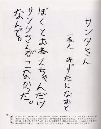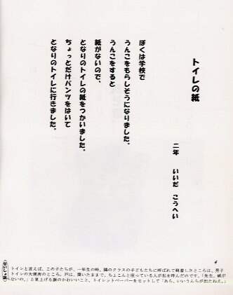 わたしたちみんなに、幼い日がありました。サンタさんを信じ、友だちとけんかをし、正義に燃え、大人を批判しました。わたしたちみんなに、純粋でまっすぐな時がありました。あの頃のことを自分自身はすっかり忘れています。でも、子どもたちの詩を読むとき、その忘れていた純粋な頃の自分を呼び戻せそうな気がしてくるのです。そして、ぴかぴか輝いている子どもたちの言葉は、まるで魔法のように、私を元気にしてくれます。疲れた心をくすぐってくれます。この魔法は、きっと私のような多くの大人たちにも「ねえ、元気をだして。一緒にお話ししましょ」とやさしく語りかけてくれるはずです。